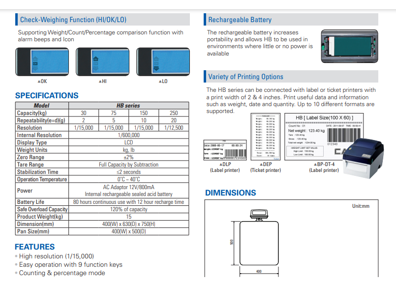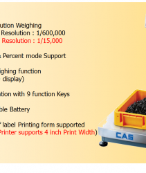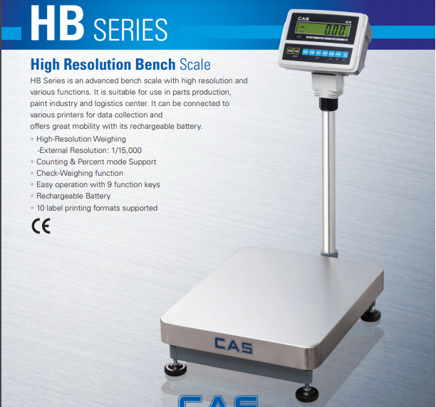 Cân điện tử HB – 150kg do hãng cân điện tử CAS – Korea sản xuất chuyên dùng cho các nhà máy linh kiện điện tử, nhà máy thức ăn chăn nuôi hoặc công ty hóa chất. Cân điện tử HB-150kg với độ chính xác cao, chạy adapter 12V và pin sạc. Tải trọng max 150kg sai số 10 g