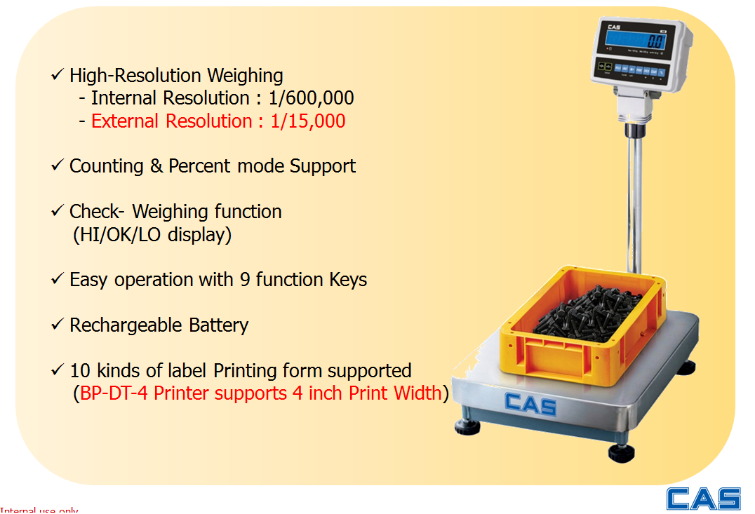 Cân điện tử HB do hãng CAS-Korea sản xuất với mức tải trọng 30kg, 75kg, 150kg với mức sai số nhỏ ứng dụng rộng rãi trong các công ty sản xuất linh kiện điện tử, sơn, ….